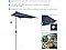 - SOLAR LED LIGHTS: The outdoor half umbrella has 15 LED lights to illuminate any space at night. Sunlight is collected through the solar panel on top of the umbrella, and the LED lights located on the ribs of the umbrella are operated by a switch on the pole. The solar lights require 5-6 hours of direct sunlight to fully charge and will operate for approximately 4 hours.