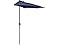 Bring shade to the balcony, deck, or patio with this half round patio umbrella. The freestanding market style 9-foot-wide umbrella is designed to be used in front of walls in a standard umbrella base. The wall umbrella is engineered to last with a steel pole and ribs as well as a polyester fabric top. This half umbrella is designed to be used with an umbrella base and a patio table (umbrella base and patio table are not included). Stay cool in your outdoor space with this umbrella, sure to provide protection and style as it is available in many colors. Designed for smaller spaces, this umbrella won't take up too much room in outdoor areas. Easily fold up this umbrella when not in use, when the wind picks up, or to store it in the colder months. The umbrella also features LED lights that are solar powered to enjoy evenings with ease out on the patio, deck, or balcony.
