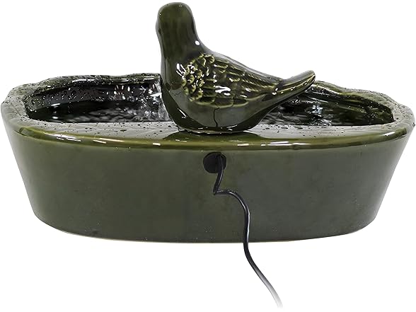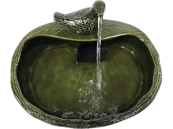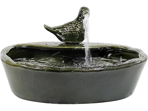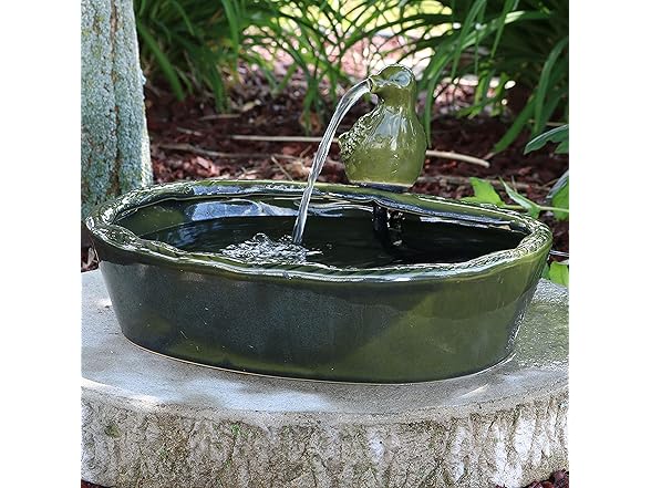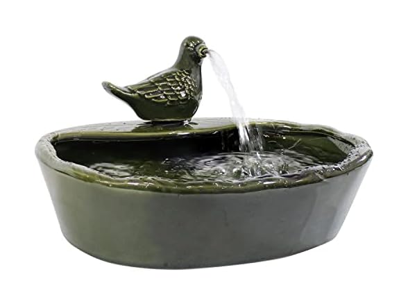 Sunnydaze Ceramic Solar-Powered Water Fountain - Green Glaze - Low-Voltage Submersible Pump with Filter - Dove