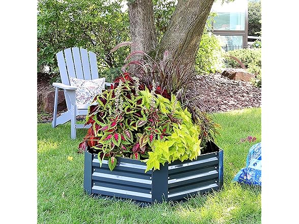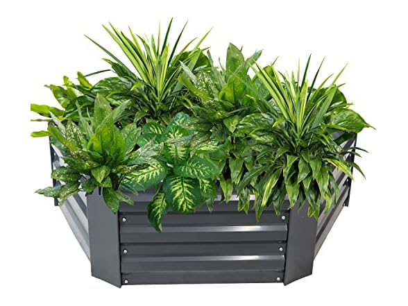 - AMPLE GROWING SPACE: This galvanized corrugated steel garden bed has plenty of space for growing vegetables and herbs or beautiful flowers in the backyard. The raised planter box measures 40.5" W (from corner to corner) x 36" D (from straight edge to straight edge) x 11.75" H, weighs 9.8 lbs, and has a soil capacity of 7.1 cu ft or 45 gal.