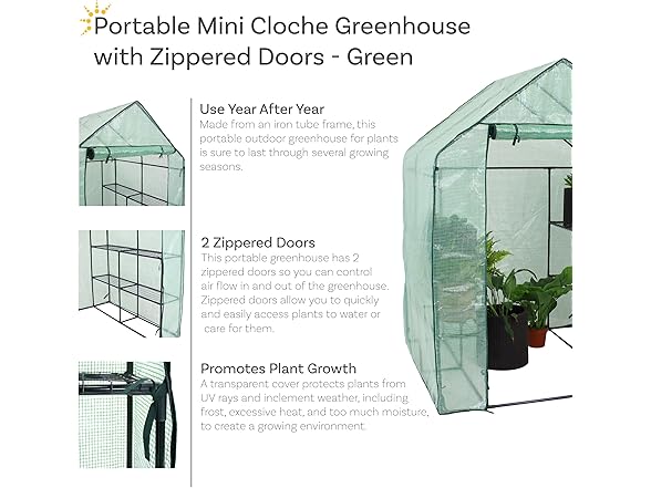 - PROMOTES PLANT GROWTH: The transparent cover protects plants from UV rays and inclement weather, including frost, excessive heat, and too much moisture. A zippered door allows for controlled airflow in and out of the greenhouse.