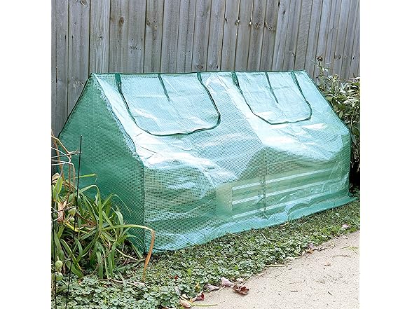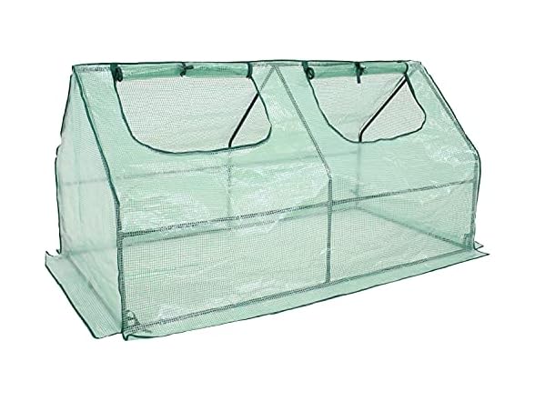 - PORTABLE MINI GREENHOUSE: Move this outdoor greenhouse across the yard, patio, or garden to ensure plants receive the best sunlight to grow. This mini cloche greenhouse measures 71" W x 35" D x 35.5" H and weighs 6.2 lbs. The doors offer a 24" W x 15" H opening into the growing area.