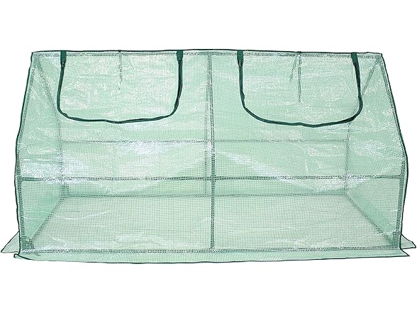 Protect plants from harsh weather and create just the right growing environment at home in the garden, patio, deck, yard, or other landscaping area with this easy-to-use mini greenhouse. With a frame made from strong iron tubing and a durable polyethylene covering coated with a UV ray protective finish, this portable seedling cloche greenhouse is great for growing vegetables, fruits, plants, and flowers. The cover protects plants from UV rays and inclement weather like frost, excessive heat, and moisture. In addition, this mini greenhouse is transparent to ensure plants receive the right amount of sunlight. Zippered doors allow for controlled airflow in and out of the greenhouse and allows easy access to plants. This mini greenhouse can be used in a variety of places outdoors to create and nurture any dream garden wherever desired. Use this greenhouse over garden beds to have a successful growing season year-round!