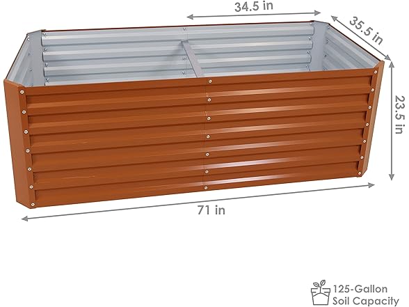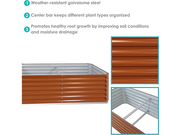 - BUILT TO LAST: Constructed from 0.6mm thick galvalume steel, this raised garden bed offers long-term durability with excellent resistance to rust, corrosion, and weathering. The sturdy design supports heavy soil and plant loads without bending or buckling. Two included rubber edge trims provide a smooth, protective finish for added safety during gardening tasks.