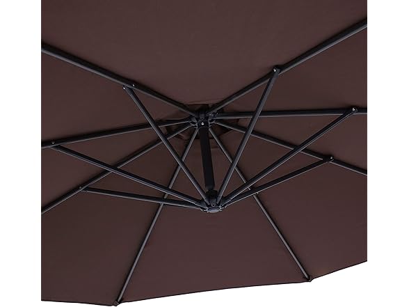 - DURABLE DESIGN: The large cantilever patio umbrella canopy is made from durable 100% polyester fabric with steel ribs and a gray powder-coated steel pole for resistance to rust and stronger support. The attached fabric ties easily hold the umbrella together when not in use.