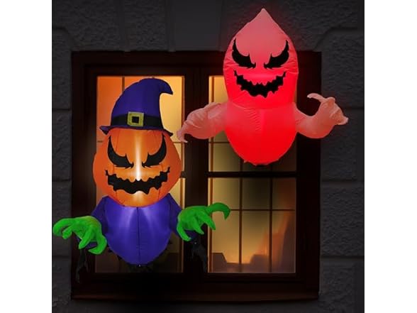 - LIGHT UP THE NIGHT: Each inflatable features 2 built-in LED pods in white to light up the decoration so everyone can enjoy these Halloween window inflatables even after the sun sets.