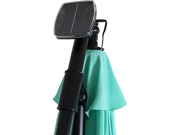 - EASY TO PUT TOGETHER: This outdoor cantilever umbrella with lights can be easily adjusted with the cantilever and crank, making it effortless to open and close. No wires or plugs are required with the solar LED lights. The solar panel on top of the umbrella collects solar energy during the day to charges the batteries, and at night, the batteries power the LED lights to illuminate any outdoor living space.