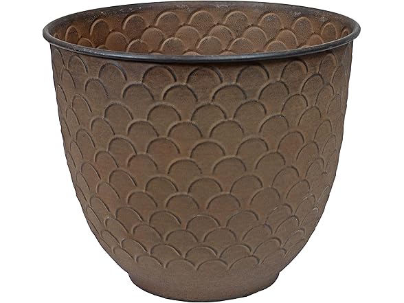 With these 12" Dinah indoor/outdoor flower planter pots, any green thumb will flourish, and any indoor or outdoor space will radiate with natural beauty and charm. Discover a great planting solution with this set of versatile flowerpots with convenient drainage holes. These eye-catching outdoor decorative planters are designed with gardening needs in mind, offering a great blend of functionality and style. With built-in drainage holes and handy rubber plugs, the flowerpots adapt effortlessly to any indoor or outdoor living space. Crafted from lightweight yet durable iron, these planters are easy to move around while ensuring a long-lasting performance. Their UV-protected and rust-resistant finish guarantees that they will stand up to the elements, retaining their beauty and strength season after season. Whether bringing the outdoors in, or enhancing an outdoor oasis, these planters are a great choice to elevate any level of gardening experience while giving beloved plants the loving home they deserve.