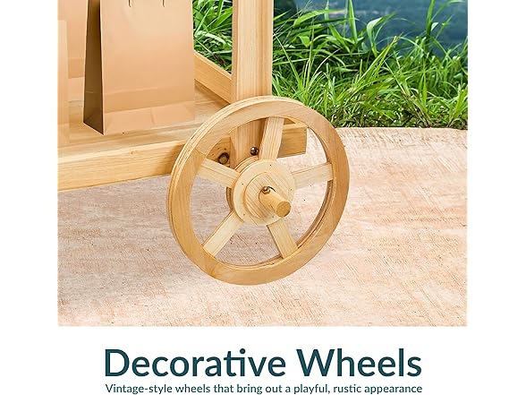 - GREAT FOR HOBBYISTS AND HOME DECORATORS: Whether a garden enthusiast, DIY crafter, or event planner, this decorative cart is great for anyone who wants to showcase potted plants, tools, or party decor in charming style. Designed to hold items like gardening gloves, small pots, or floral arrangements, it’s a must-have for those interested in rustic outdoor aesthetics and creative event displays.