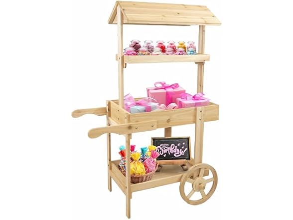 - GREAT FOR WEDDINGS, GARDENING AND CRAFT FAIRS: This elegant decorative garden cart can be used in a variety of places to display flowers, party favors, and crafted items. The two front wheels give this party cart a unique, playful look. Please note, the wheels are for decorative purposes only. Empty all tiers before attempting to move the cart.