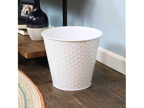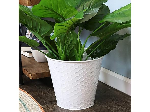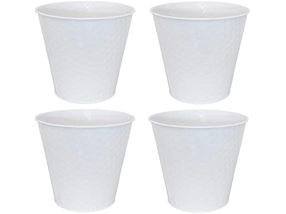 Sunnydaze Galvanized Steel Buckets with Hexagon Pattern - Set of 4 - White - Small Colored Metal Decorative Pails - Indoor Use