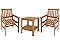 - COMFORTABLE SEATING: This wooden outdoor furniture set is constructed of meranti wood with an attractive teak oil finish, which helps protect the wood from the elements. The set includes 2 chairs and 1 side table.