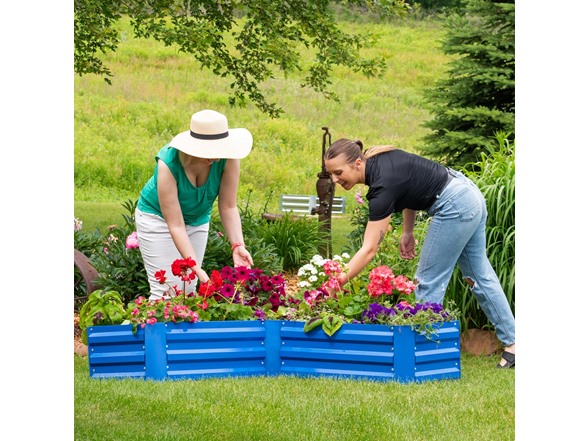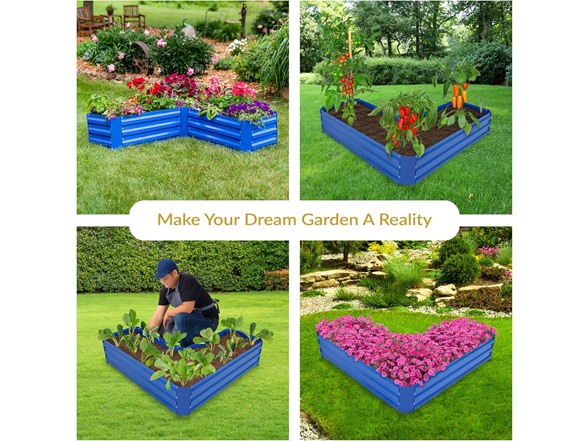 Sunnydaze Galvanized Raised Garden Bed - Metal Raised Bed for Gardening - Outdoor Planter Box for Flowers, Plants, and Vegetables 12” H L-Shaped, Blue