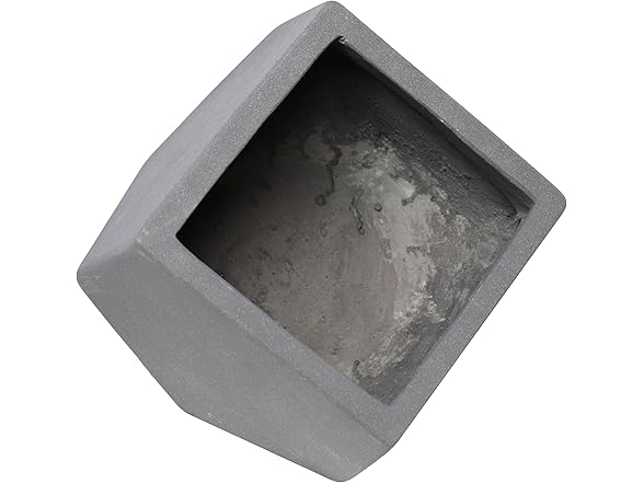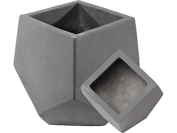 Update a plant stand indoors or the patio, front porch, deck, or yard with a modern touch with this set of 2 concrete outdoor planter pots. The planters feature an abstract design with elongated edges and a square top for a modern appearance. This planter set includes two different sizes to create a cohesive look in any living space. Both planters are made from durable cement for resistance to the elements outdoors. Although they are made from cement, the planters are lightweight to make moving them easy. The large planter weighs a light 13 pounds, while the small planter weighs only 4.6 pounds. The modern planter set features a natural, gray cement finish for a cool look indoors or outdoors. Never worry about water leaking onto the floor in the living room, sunroom, or bedroom because of the drainage hole-free bottom. Because the planters do not have drainage holes, water the plants carefully to prevent overwatering and consider placing them in a location that receives little rainfall.