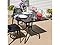 Discover the harmonious blend of form and function with this folding outdoor dining table. Crafted with exquisite detail, the curved iron legs create an artful foundation that provides both stability and a touch of timeless charm. The polypropylene tabletop not only exudes sophistication but is also exceptionally durable and weather-resistant, ensuring longevity and low maintenance. The 1.25" diameter umbrella hole at the center of the table allows for a tailored outdoor dining experience, making basking in the warmth of the sun or enjoying the cool shade of a patio umbrella (not included) possible. The square table can also be folded down to save space in a garage or shed for storage. Fold the legs inward and slide the tabletop down so it rests flat against the legs for a slim profile. Elevate any outdoor space with this durable folding table, inviting cherished moments and shared laughter for years to come.