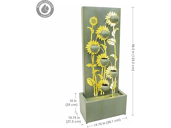 - STRIKING FOCAL POINT: The tall outdoor water fountain measures 19.75" W x 10.75" D x 48.5" H and weighs 24.8 lbs. The basin measures 19.75" W x 10.75" D x 10" H and has a water capacity of 5 gal.