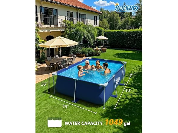 Sunrio 10' x 79" x 26" Rectangular Above Ground Swimming Pool, Swimming Capacity 1049 Gallon