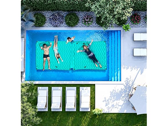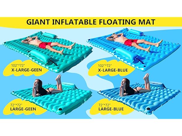 - Mutiple Floating Settings: This pool mat float equipped with 1 air pillow that can be relax your whole body, suitable for the head and neck , there are 4pcs buckles that can be connected to boats as well.
