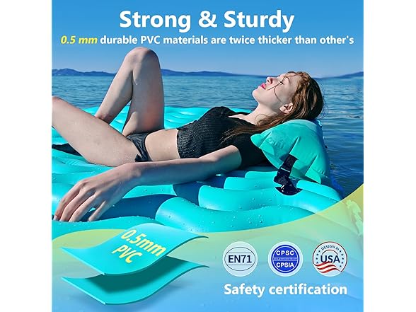 - Safe & Fun: This inflatable floating mat is certified by CPSIA, CPC and ASTM, it is non-toxic, lead-free and BPA-free, you and your family can rest assured and enjoy summer water activities happily, also is a great gift for summer water party.