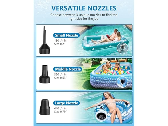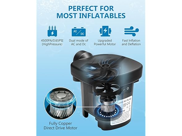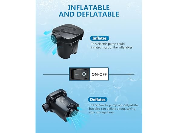 Sunrio Air Pump for inflatables 110-120V Air Mattress Pump Fast Electric Inflator Deflator Pump with 3 Nozzles for Pool Floats Raft Air Bed