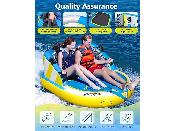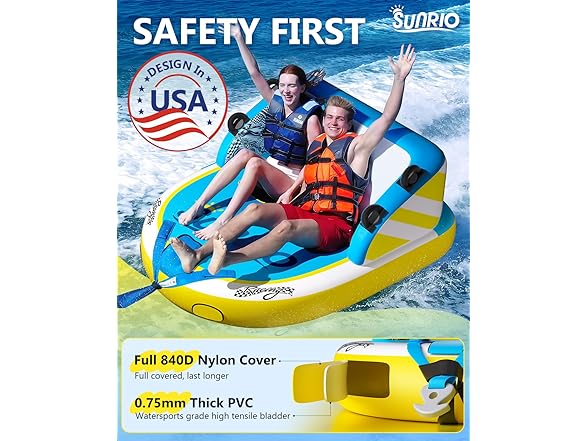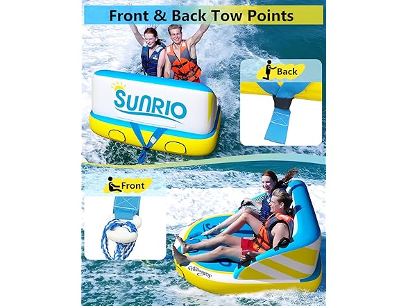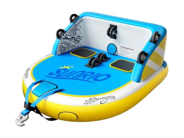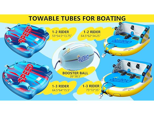 Sunrio 2025 Upgrade Towable Tubes for Boating 1-3 Riders Inflatable Water Sport Towable Tube for Boat Heavy Duty Nylon Cover with Zipper Bolster Fins Safety Air Valve Padded Handle