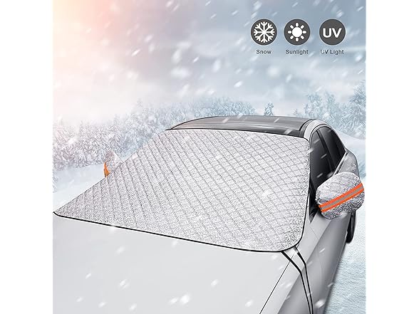 - Protection for All Weather: protects your car from from snow, frost, water, sleet, slush, hail and snowstorms. Save your time in winter mornings to clean up snow and also maintain visibility of your windshield