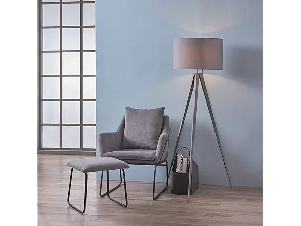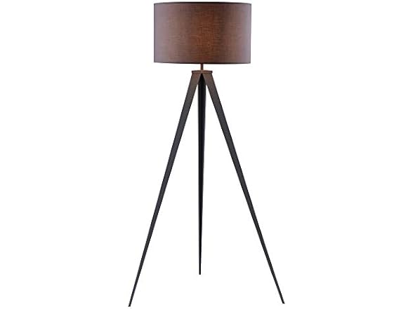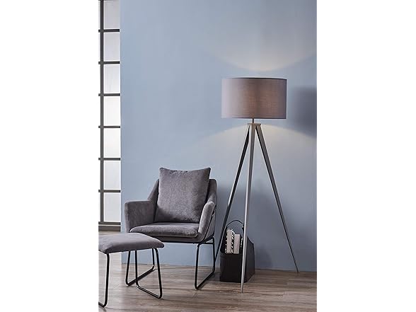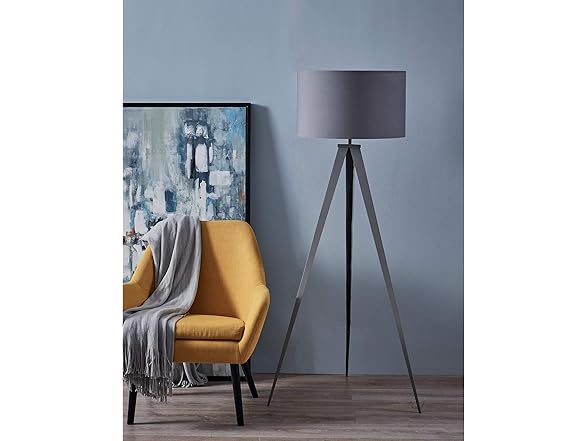 Teamson Home Romanza 61.81" Tripod Floor Lamp, Minimalist Light in Living Room, Dining Room, Bedroom or Home Office, in Gray with Gray Linen Drum Shade