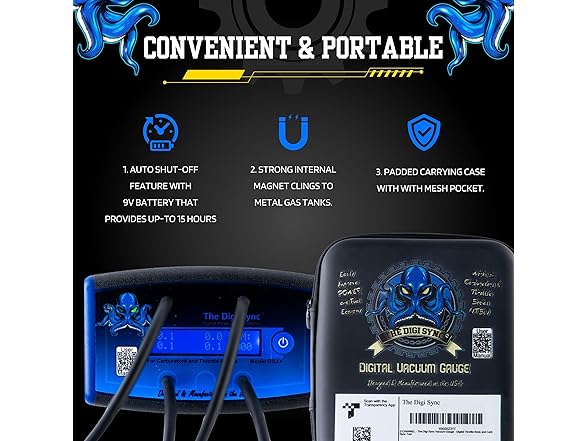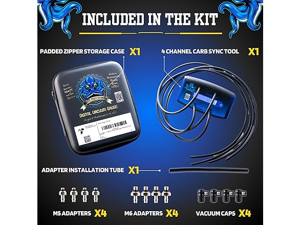 4-Channel - The Digi Sync‚Throttle Body & Digital Carb Sync Tool, Easy To Use & Accurate Carburetor Synchronizer, Vacuum Gauge Carburetor, Peaking Manometer, for Carbureted & Fuel-Injected Engines