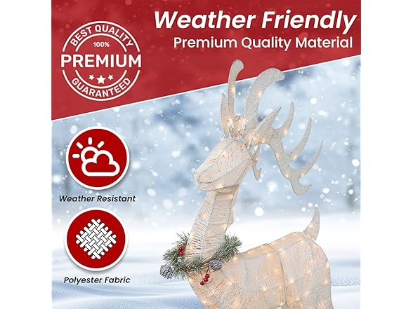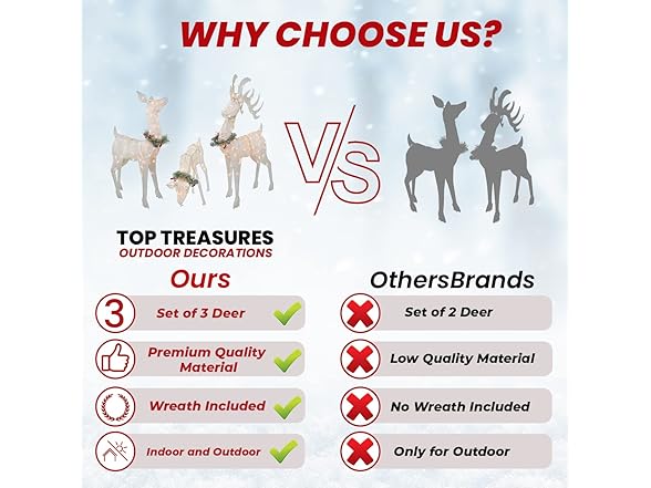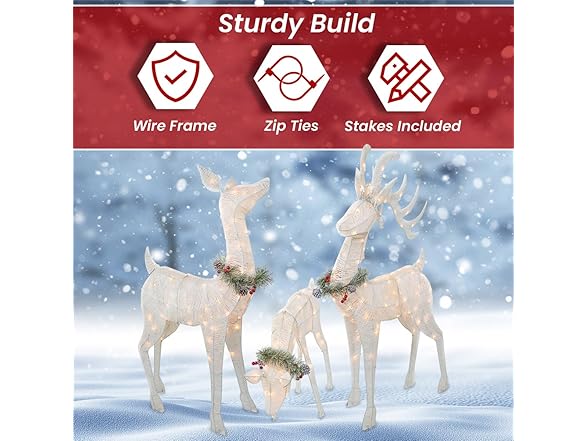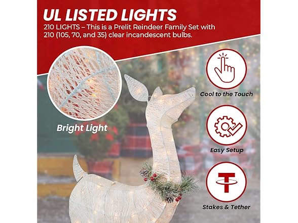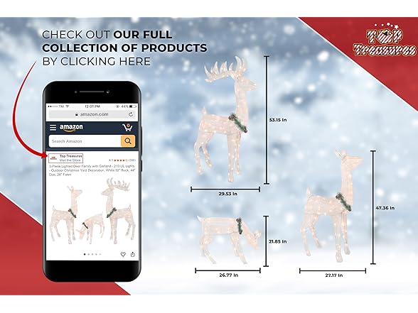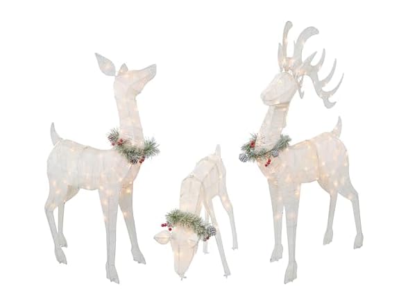 Top Treasures 3-Piece Lighted Deer Family with Garland - 210 UL Lights - Outdoor Christmas Yard Decoration, White 52" Buck, 44" Doe, 28" Fawn