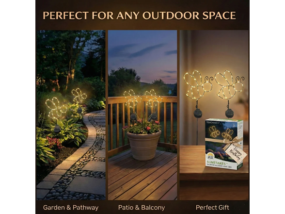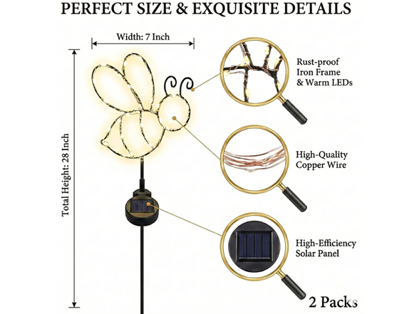 Perfect for lining walkways, driveways, patios, or garden paths, these bee-shaped solar stake lights add a warm and welcoming touch to any outdoor living area.