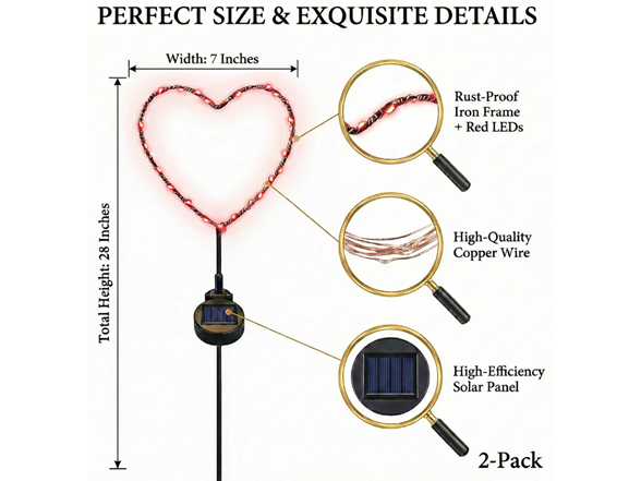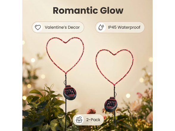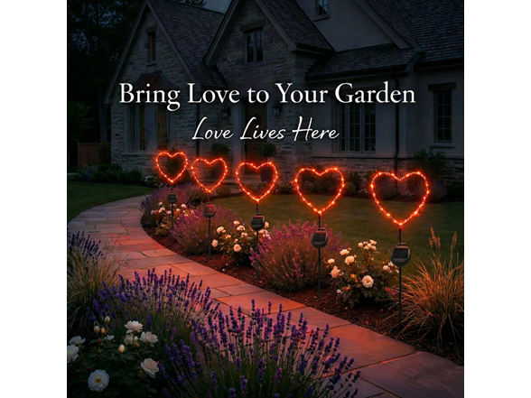 Perfect for lining walkways, driveways, patios, or garden paths, these heart-shaped solar stake lights add a warm and welcoming touch to any outdoor living area.