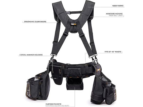 Toughbuilt - Framer Suspension Rig, Heavy-Duty Tool & Material Hanger with Quick-Adjust Straps, Multiple Hang Points, Portable for Framing & Construction (TB-303-6)