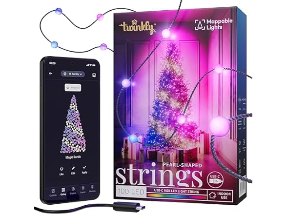 Twinkly Strings USB-C – 100 Pearl-shaped RGB LEDs Green Wire USB-C