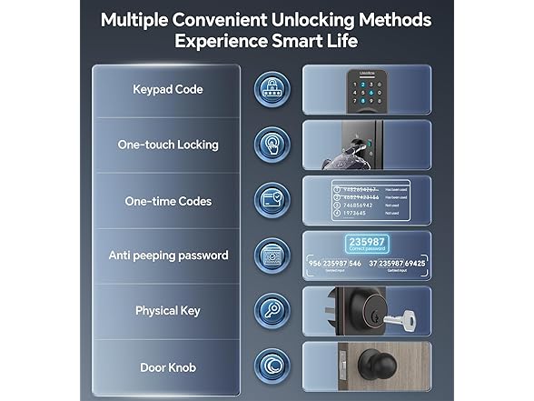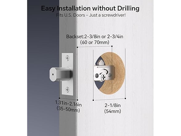 - Fits Most U.S. Standard Doors: This door knob with lock is compatible with most U.S. residential and commercial doors—no door modification required. It’s ideal for renovating old apartments or upgrading new homes to a front-door smart lock.