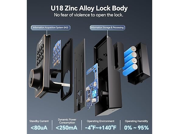 - Simplified Design: Low Failure & Energy Savings: This smart lock has no redundant features, cutting its failure rate by 30%. It runs on 4 AA batteries that last 6+ months (no extra power drain)—reducing maintenance hassle for busy U.S. households that use this keyless entry smart lock daily.