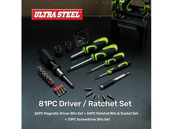 - COMPREHENSIVE 81-PIECE SET: Complete tool collection includes 26 magnetic driver bits (PH2, S1, S2, S3, Star T20) and 34-piece reversible ratchet screwdriver with carbon steel sockets for versatile fastening applications