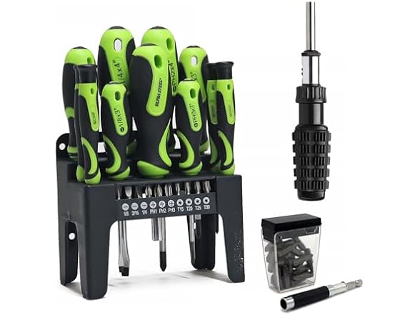 - REVERSIBLE RATCHET MECHANISM: Screwdriver features reversible ratchet functionality for quick directional changes, making it ideal for both tightening and loosening fasteners in tight spaces