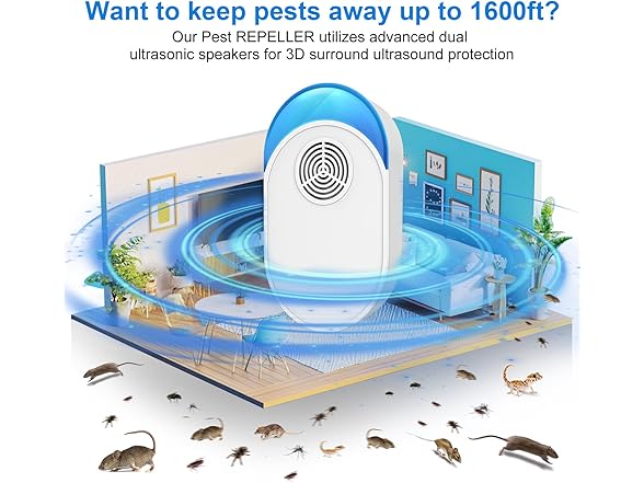 Upgraded Ultrasonic Repeller, Indoor for Roach, Rodent, Mouse, Bugs, Ant, Mosquito, Mice, Spider, Electronic Plug in Pest Control