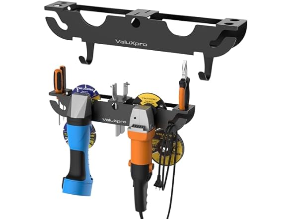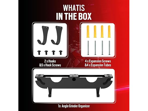 - NO HASSLE INSTALLATION - Our angle grinder organizer comes fully assembled and is easy to mount. You'll receive it as a complete unit, ready to be securely fixed to the wall using the included mounting hardware. Our grinder power tools stand includes 2 handy cord hangers for added convenience. Install them to ensures that your grinder's cord can be neatly hung, reducing clutter and optimizing your workspace right from the start.