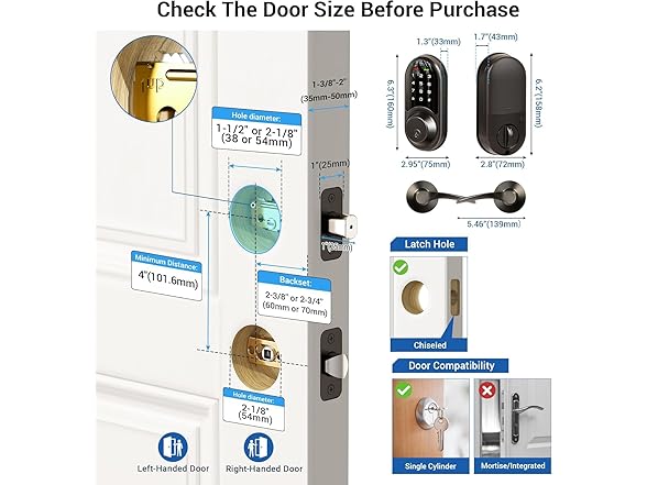 VEISE RZ06B Keypad Smart Lock with Levers Matt Black