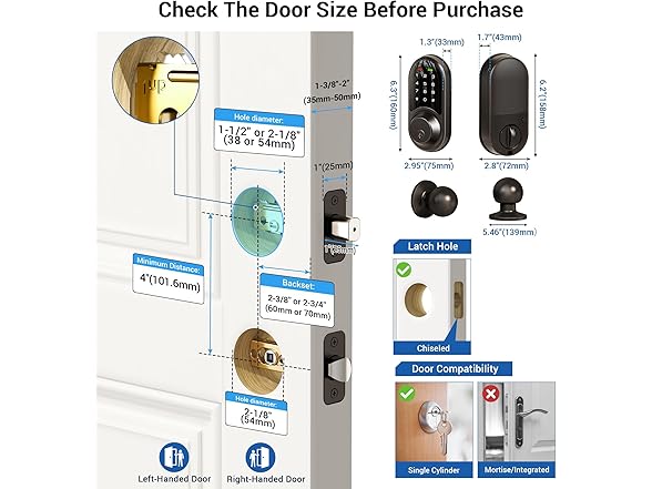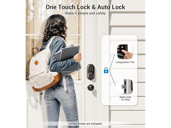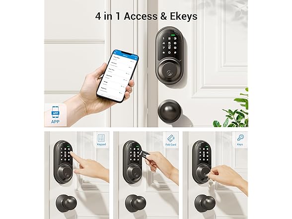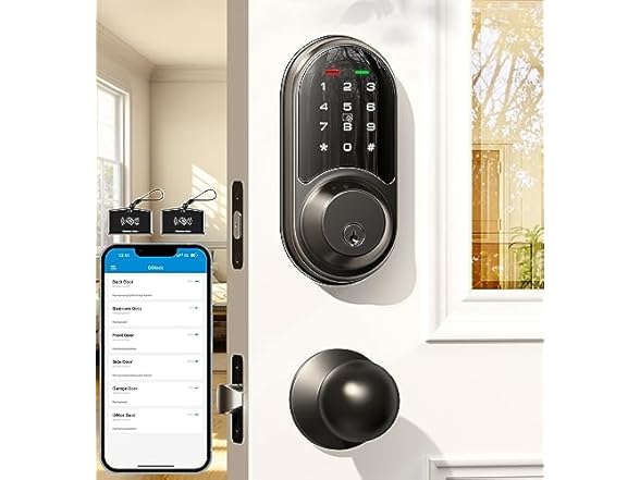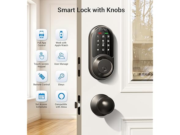 Veise RZ06C Smart Locks for Front Door, 2 Knob Handle Set, Keyless Entry Deadbolt, App Control, Electronic Touchscreen Digital Keypad, Auto Lock, Easy Installation, IP54 Waterproof