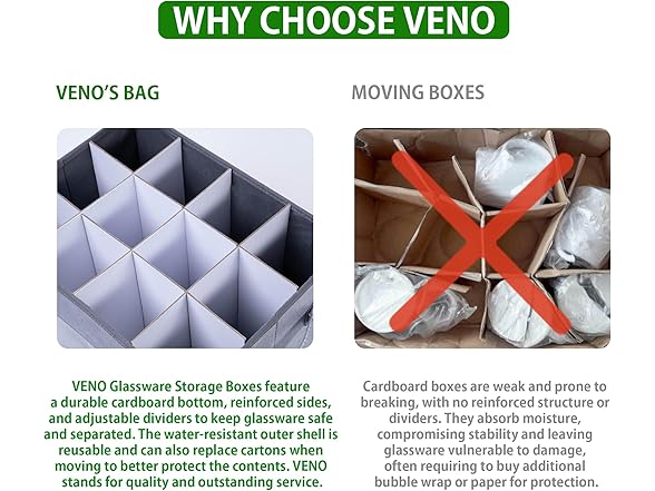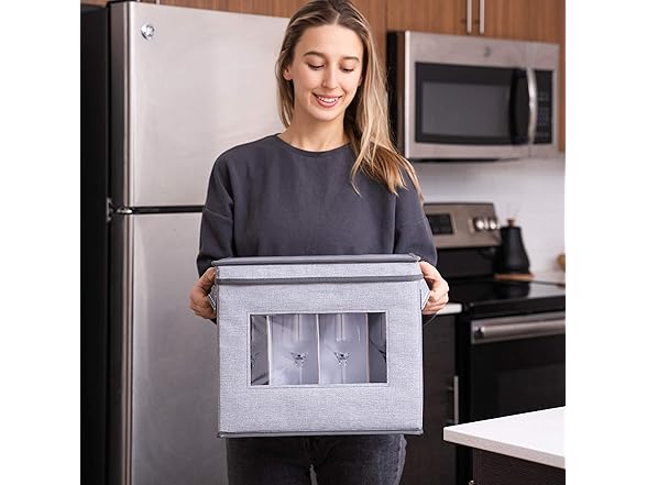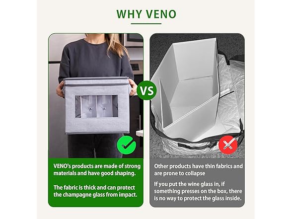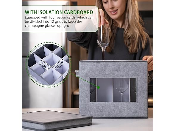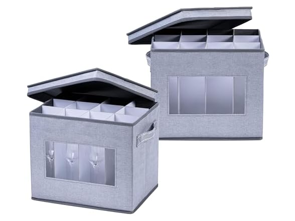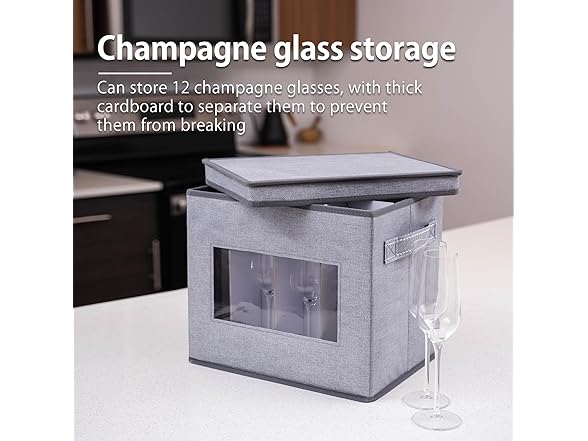 VENO 2 Pack Champagne Flute Glass Storage Box with Lid and Handles, Moving Boxes for Glasses, China Organizer Container, Glassware Holder, Dividers for 12 Glasses (Champagne Flute, 2 Pack)
