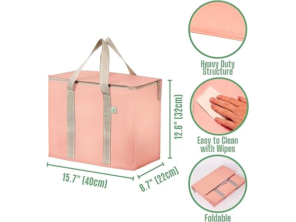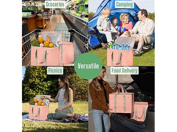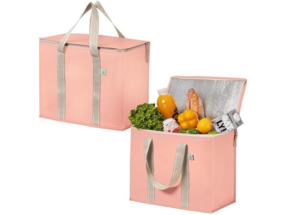 VENO 2 Pack Cooler Bag and Insulated Grocery Bags for Food Delivery, Collapsible Cooler. Reusable Shopping Bags for Groceries with Hard Bottom, Zippered, Foldable, Heavy-Duty
