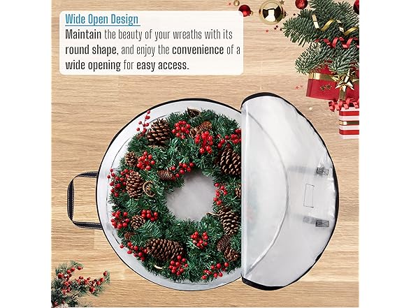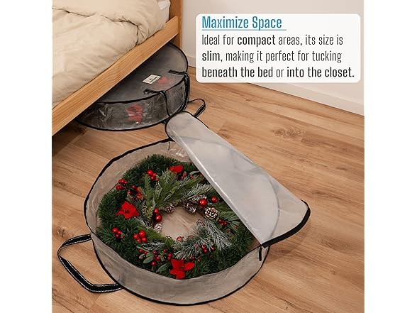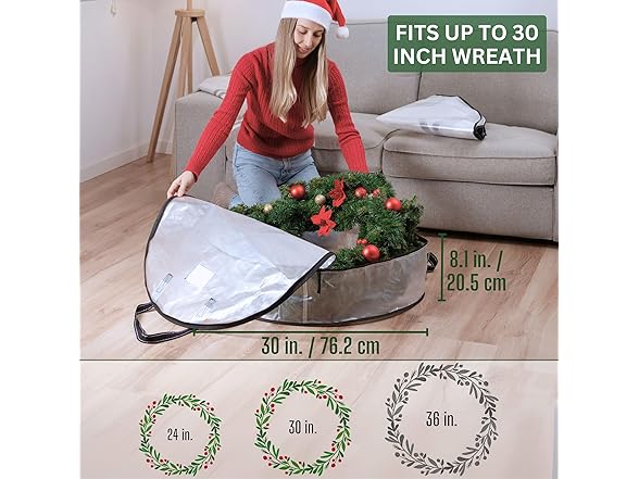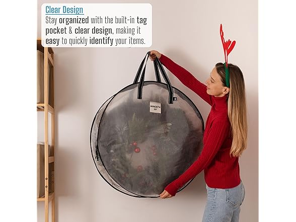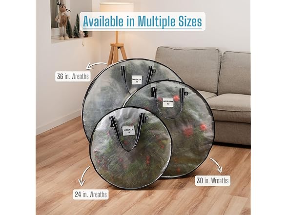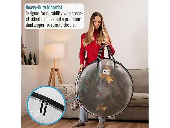 VENO 2 Pack Christmas Wreath Storage Container - 30 Inch Clear Wreath Bag, Christmas Garland and Holiday Decoration Organizers with Zipper and Durable Handles (Clear, 30"-2 Pack)