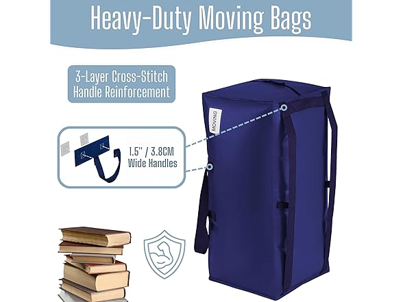 - 【HEAVY DUTY MOVING BAGS】Stronger Than Cardboard Boxes. Made from thick, high-density material for superior load capacity. These moving bags heavy duty outperform traditional moving boxes, cardboard boxes, and plastic bags, holding clothes, books, bedding, and other heavy moving supplies without tearing or collapsing.