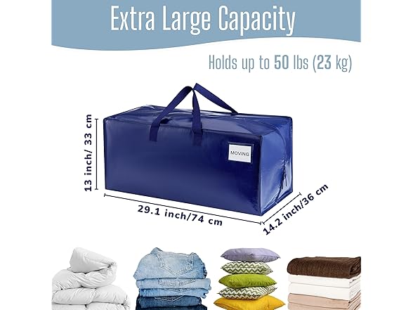 - 【EXTRA LARGE CAPACITY】Replace Large Moving Boxes. Oversized design works as a large tote bag alternative to large moving boxes, storage bins, and storage totes, helping you pack more in each bag and reduce the number of trips during moving or storage.