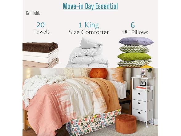 - Multi-Functional: Versatile and multi-purpose, suitable for moving, storing, transporting, laundry, camping, traveling, organizing, space-saving, under-bed storage, small trips, etc. Ideal for moving into your new apartment or college dorm room, storing winter clothes and bedding in your wardrobe, and keeping pillows and blankets clean and dust-free for guests during RV trips. Great for storage in your closet, garage, basement, attic, or storage unit.