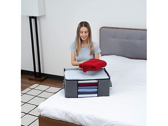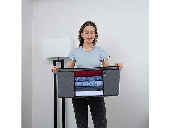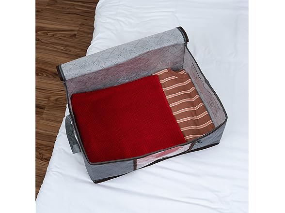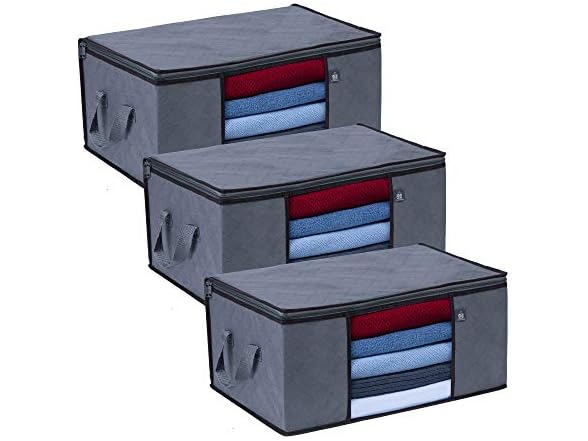 VENO MG-0004 3 Pack Large Clothes Storage Bag Organizer with Reinforced Handle, Thick Container Bins for Blankets, Comforters, Bedding, Foldable with Sturdy Zipper, Clear Window, Grey, Reusable (13.3 Gallon)