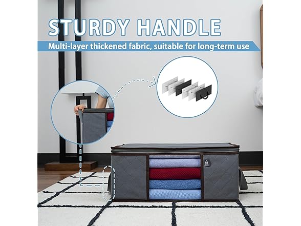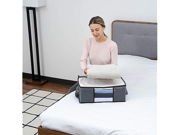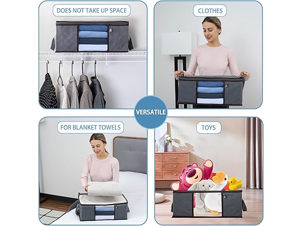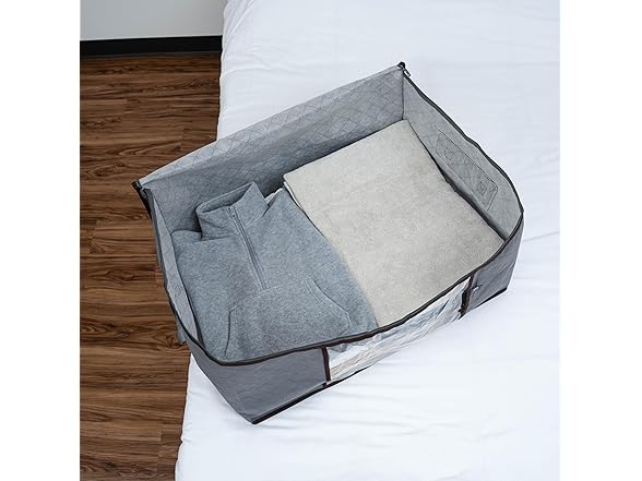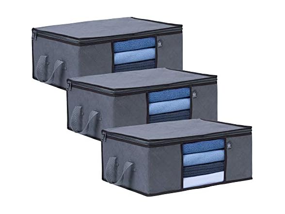 VENO MG-0004 3 Pack Medium Clothes Storage Bag Organizer with Reinforced Handle, Thick Container Bins for Blankets, Comforters, Bedding, Foldable with Sturdy Zipper, Clear Window, Grey, Reusable (9.5 Gallon)