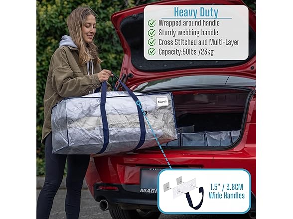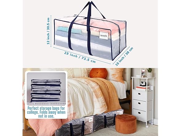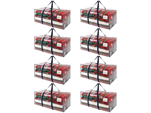 VENO MG-0009 8 Pack Moving Bags, Christmas Storage Containers, Storage Bins with Lids, Reinforced Wraparound Handles, Packing Bags for Clothes, Bedding, Comforters (Clear, 8 Pack)